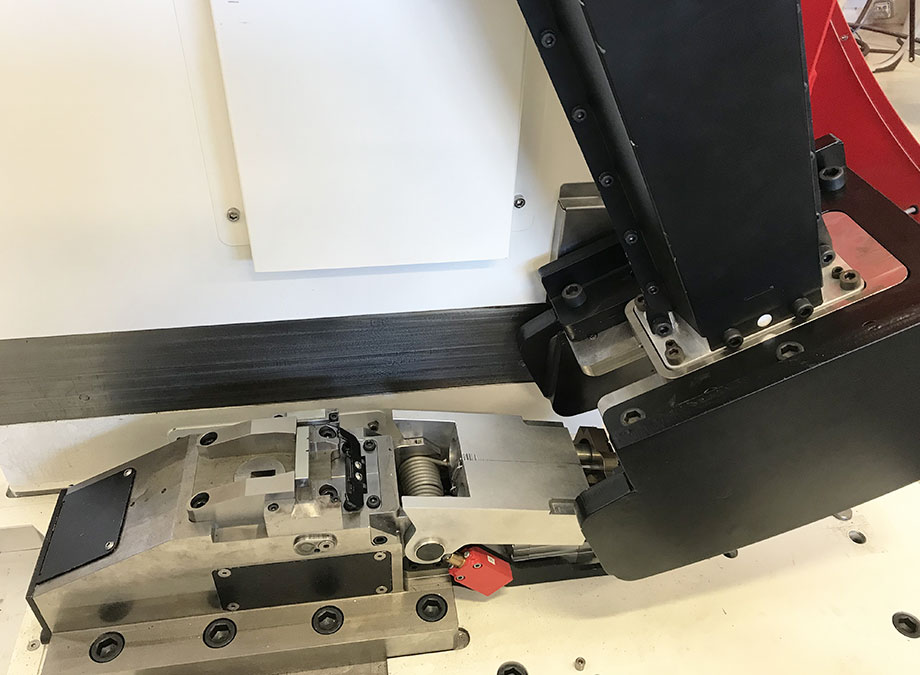 Der Prüfstand ist mit einem System zur automatischen Zentrierung des Teststücks durch die Kerbe ausgestattet. Der Hammer wird automatisch freigegeben, sobald die Sicherheitstür geschlossen wird, wodurch ein schneller und reproduzierbarer Test gewährleistet wird.