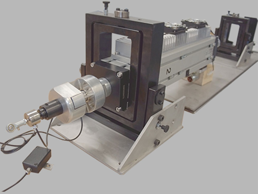 LF Technologies bietet eine Vorrichtung mit zwei elektrischen Zylindern, zwei Kraftsensoren und einer Steuerkonsole. Jede Achse wird unabhängig gesteuert, entweder manuell oder gemäß einer programmierten Bahn. Darüber hinaus ist jede Achse mit einem Linear- oder bürstenlosen Motor ausgestattet, der von einem Umrichter gesteuert wird.