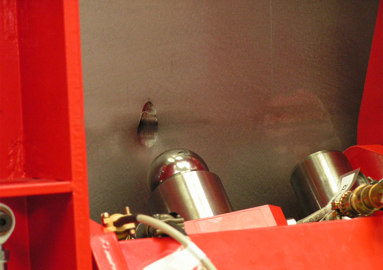 Der kombinierte statische/dynamische Impaktor führt Stöße auf Flugzeugkanzeln aus. Ein Laser- und Entfernungsmesssystem erleichtert die Tests und liefert genaue Ergebnisse.