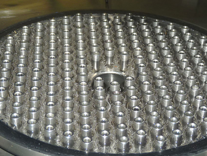 Der Zusatzring bleibt auf beiden Seiten 200°C heiß. Sie wird durch eine Last von 2000 kN flach gehalten, die über eine Presse mit einem Hydraulikzylinder (250 t, 300 mm Hub) und einem Steuergerät aufgebracht wird.