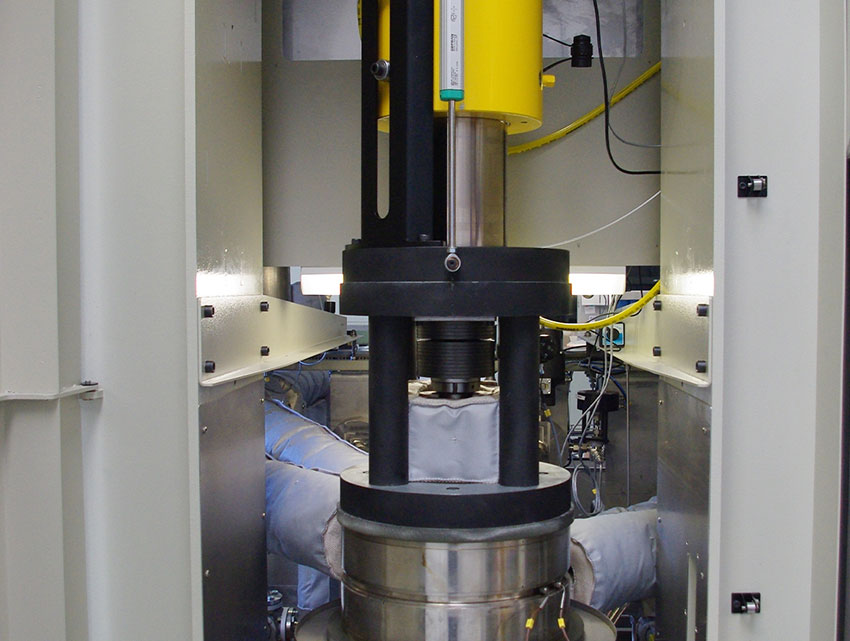 Die Funktion des Prüfstands besteht darin, Tests an den oben definierten Modellen durchzuführen, sie unter einer Last von 2.000 kN zu halten und unabhängig voneinander Temperaturzyklen auf beiden Seiten des Modells durchzuführen. Der Prüfstand muss in der Lage sein, die Temperatur auf beiden Seiten des Modells trotz der Wärmekonvektion des Modells zu halten, was eine hohe Heiz- und Kühlleistung erfordert.