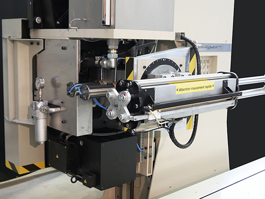 Es gibt 4 Prallzylinder, die paarweise in diagonaler Anordnung arbeiten. Die Verwendung eines Zylinderpaares ermöglicht hohe Geschwindigkeiten, die Verwendung beider Zylinderpaare ermöglicht eine höhere Kraft. Die Zylinder sind durch Flansche aus Legierung miteinander verbunden und mit einem doppelten Positionsmesssystem (absolute Messung und inkrementelle Messung bei hohen Geschwindigkeiten) verbunden. Die Zylinder sind um 90° um eine horizontale Achse drehbar.
