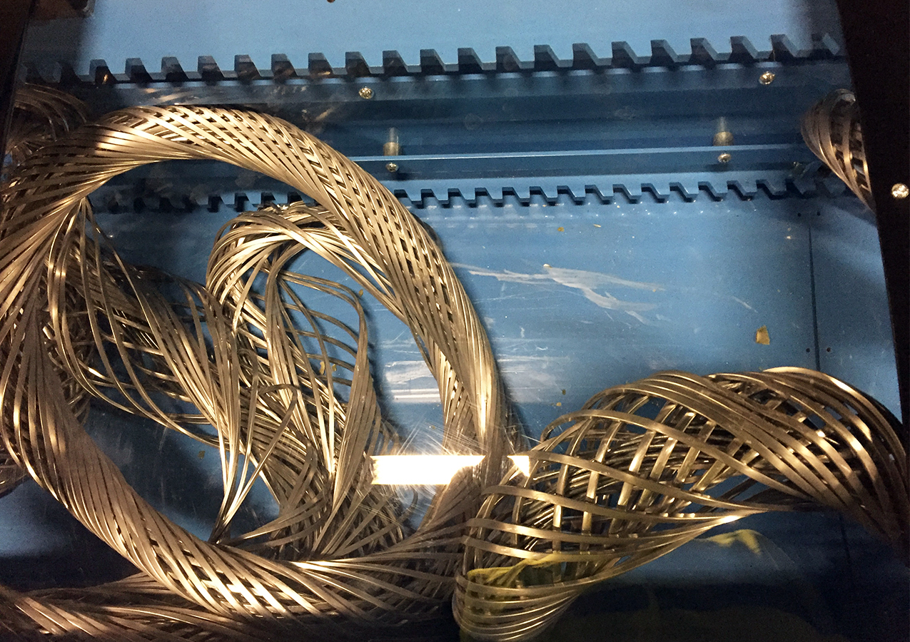 Prüfstand für elektrische Kabel und Leiter. Misst die Zugfestigkeit von Kabeln bis zu einer Länge von 20 Metern. Führt auch Dehnungstests durch.