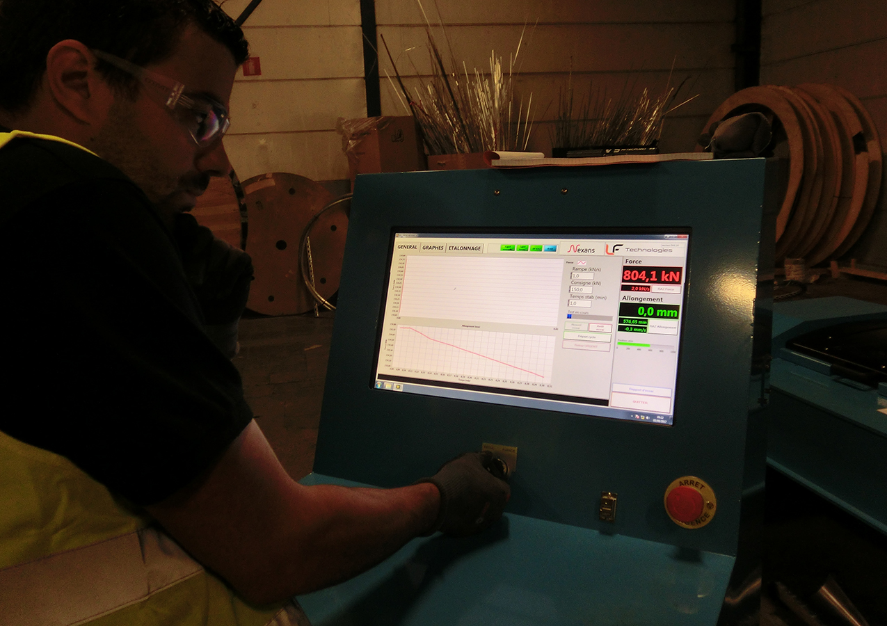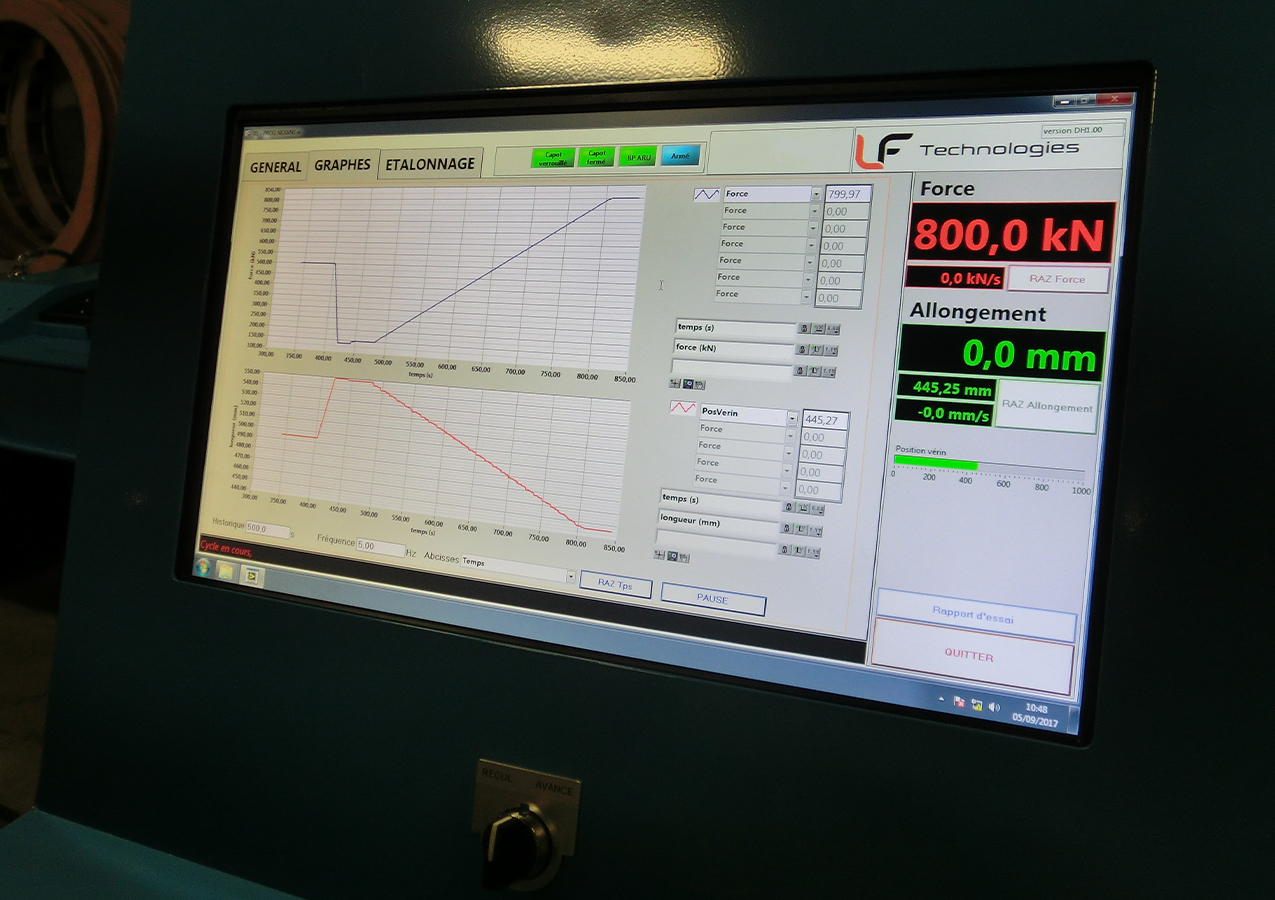 Entwurf und Herstellung einer horizontalen Zugmaschine, die es ermöglicht, Kabel bis zum Abriss zu ziehen und die Kraft/Dehnungskurve nach parametrisierbaren Zyklen zu messen, die den geltenden Testnormen entsprechen.